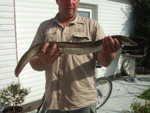 Jörg Plüschau fing diesen stattlichen Aal von 75 cm und 1 kg in der Dove-Elbe.