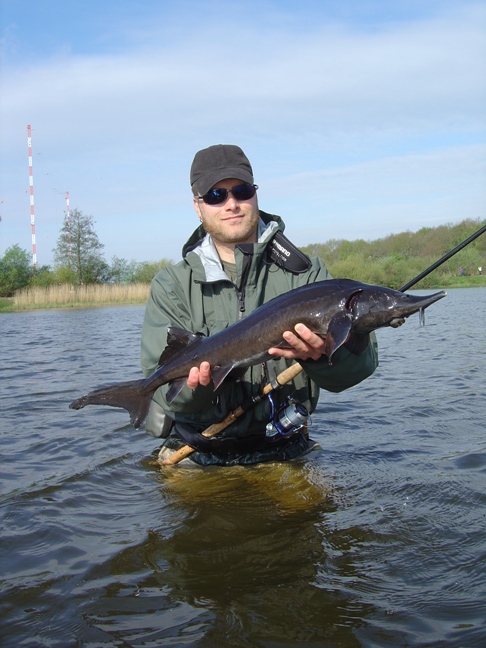 ... zunächst konnte einen schönen Stör fangen, ....