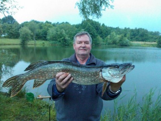 Lothar Weißmann hatte auch mal wieder Fangglück und fing diesen großen 84 cm langen und 4,3 kg schweren Hecht auf Köderfisch in der Kieskuhle Appen.