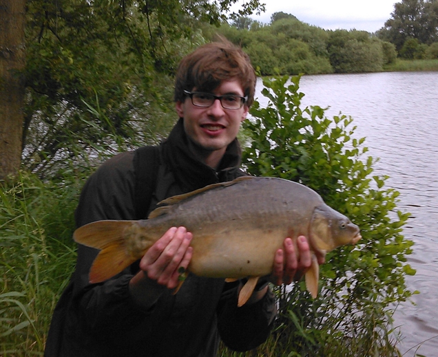 Netter Beifang in Form eines schönen Spiegelkarpfens von Helge Neumann beim Spinnfischen auf Zander.