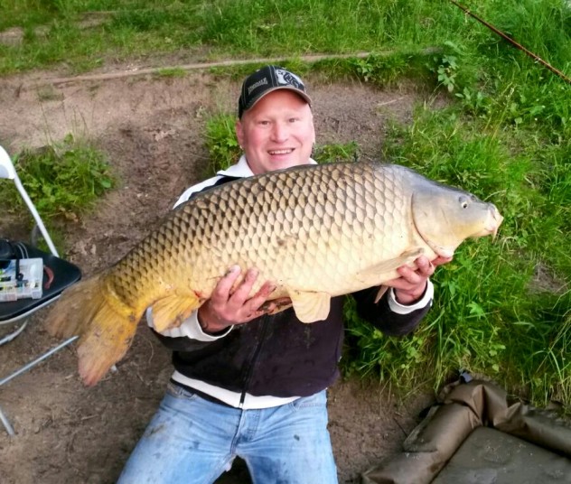 Marco Krüger konnte einige große Karpfen im Funkturmsee fangen. U.a. diesen kapitalen 86 cm langen und 10,50 kg schweren Schuppenkarpfen.