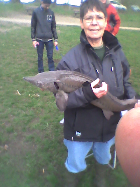 Hannchen Langhans hatte eine spektakulären Drill beim Anangeln am Funkturmsee und konnte diesen über 1 Meter langen Stör letztendlich landen.