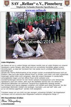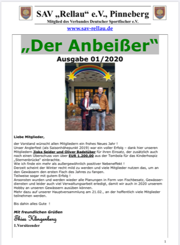 In der dieser Rubrik findest Du unser Informationsblatt "Der Anbeißer". Pro Jahr erscheint derzeit 1 Ausgabe, die per Post an alle Mitglieder verschickt wird. Zum Öffnen der PDF-Dateien